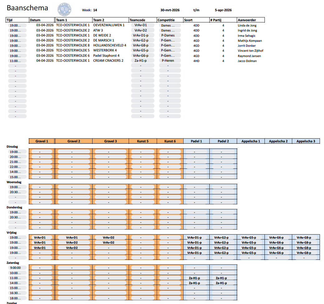 Baanschema week 14