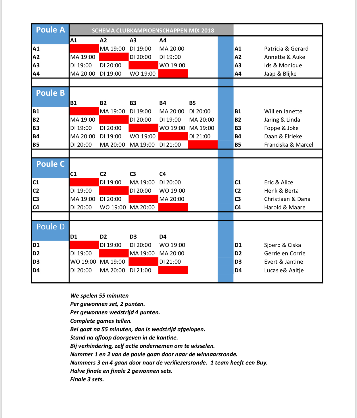 Volgende week starten we met de clubkampioenschappen Mix 2018.