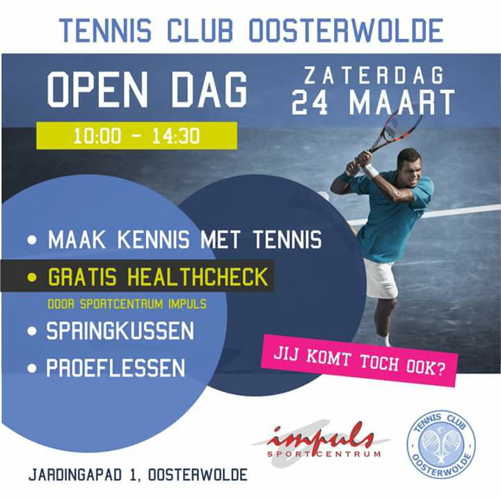 🎾 Zaterdag 24 maart a.s houden wij open dag van 10.00 tot 14.30 uur. Voor nieuwe leden is er een mooie aanbieding! TCO-leden kunnen hun pas ophalen en meedoen aan het openingstoernooi.